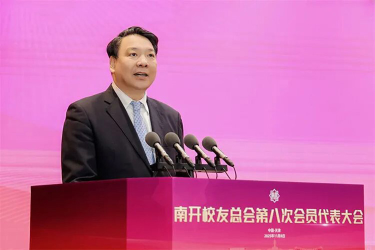 南开大学校长陈雨露在致辞中向心系母校、建功四海的南开人表示感谢。他指出,此次大会既是一次回望光辉历程、共叙南开情谊的大团圆,更是一次面向未来、凝聚力量、共绘蓝图的大盛会,各位代表肩负全球校友的信任与重托,齐聚津门,共商校友工作发展大计,共谋南开发展新篇,意义非凡。他深情回忆了校友在南开发展历程中作出的卓越贡献,对校友们多年来对母校在物质上的慷慨支持与实践经验上的倾囊相授表示衷心的感谢。无论身在何方,南开永远是校友们坚强的后盾和精神港湾。他期待校友们“常回家看看”,重温青春岁月,见证母校新貌,并希望以本次大会为契机,更广泛地凝聚起遍布全球的南开力量,共同为教育强国建设、民族复兴伟业、人类发展进步做出新时代卓越的南开贡献。
